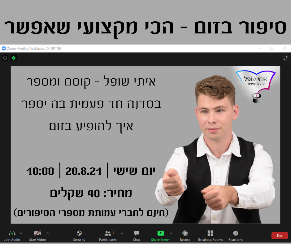 לאור המצב בארץ החלטתי להעביר סדנה ובה כל הדרכים להעברת שעת סיפור טובה ומקצועית בזום